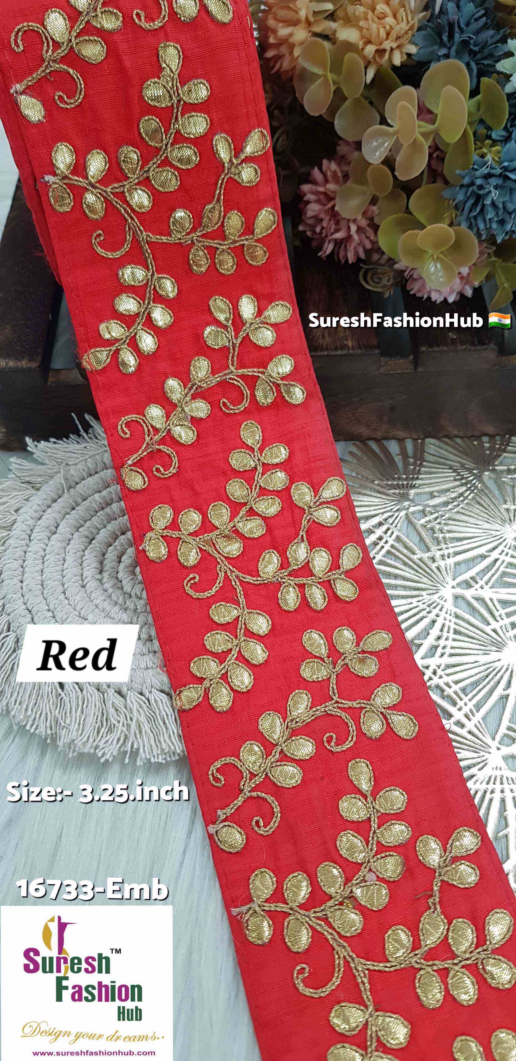 Don't miss this opportunity to enhance your projects with the exquisite beauty of our 3.25-Inch Laser Gota Leaf Detail Embroidery Trim, available for a limited time only.