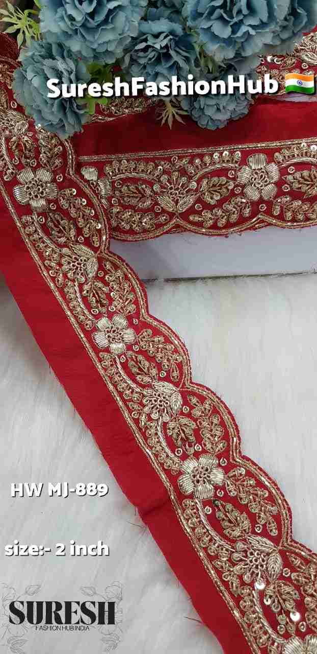 This premium handmade couture border is available in a striking *Red* shade, specially selected to suit a wide range of traditional and contemporary Indian fashion for both men and women.