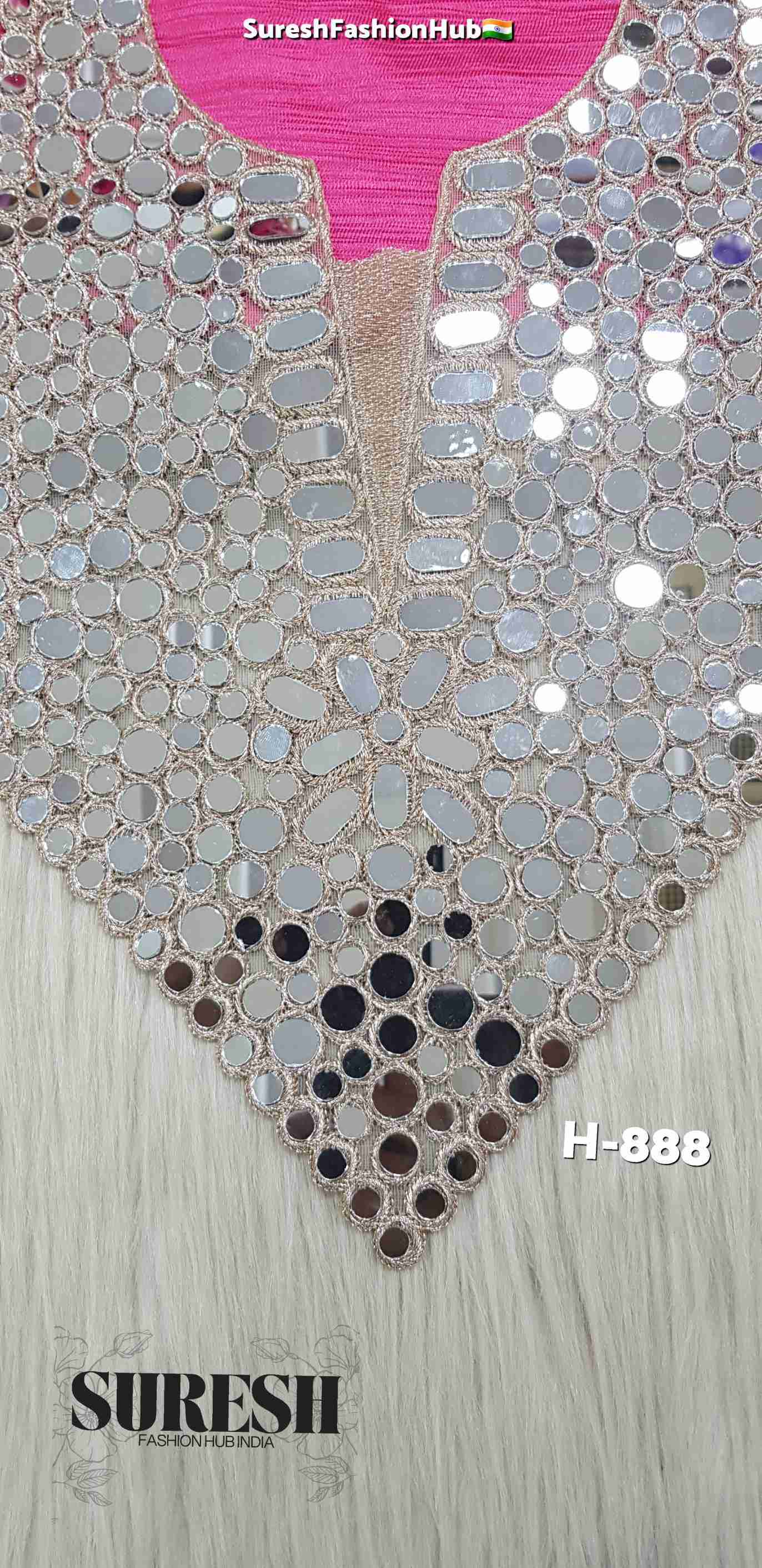 Introducing our *N-888 Geometric Floral Mirror Embroidered Neck, a beautifully designed **machine-made embroidery neck patch, priced at **Rs 300 per piece*.