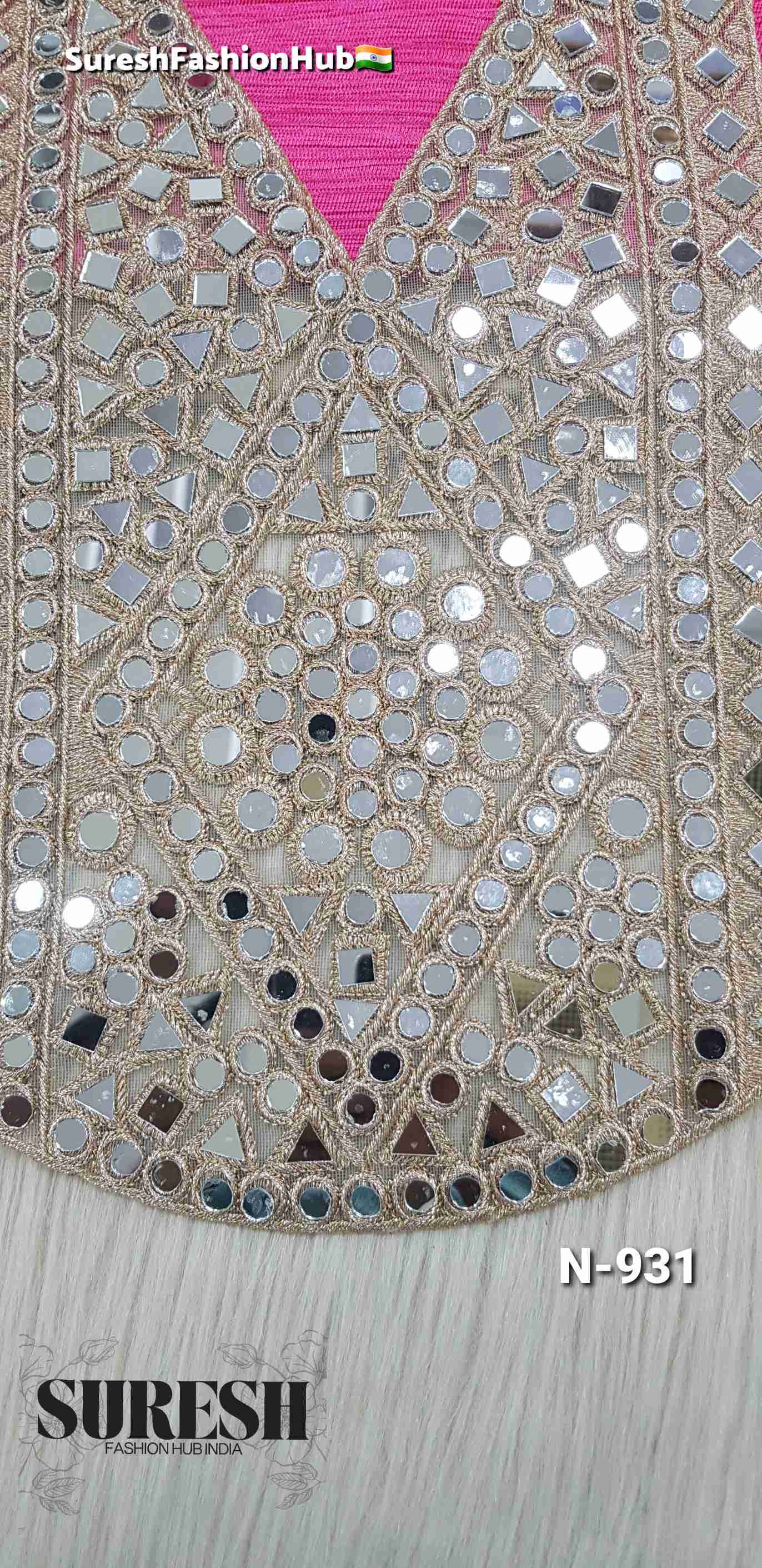 Introducing our *N-931 Geometric Floral Mirror Embroidered Neck, a premium **machine-made embroidery neck design, priced at **Rs 350 per piece*.