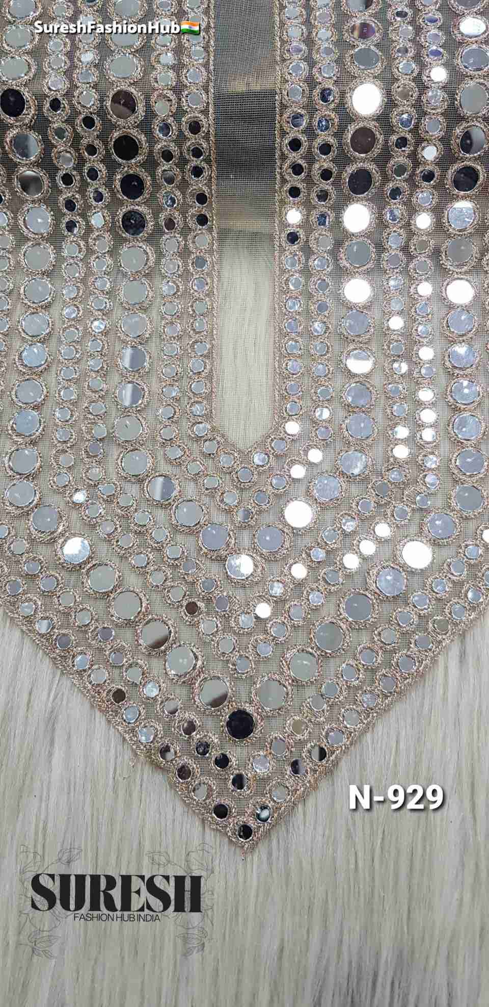 Geometric mirror neck design, N-929 embroidery neck, round mirror neck patch, off white mirror neckline, black mirror embroidery neck, rose mirror neck design, pearl mirror neck India.