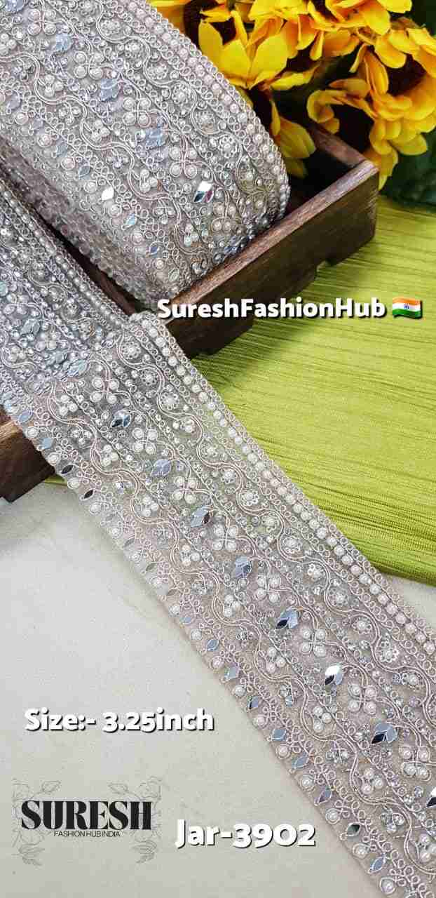 Jar-3902 is a lace that truly stands out for its *simplicity enhanced with luxury. The combination of a plain chord organza base with sparkling diamonds, soft pearls, and subtle mirrors creates a design that feels **beautiful, elegant, and effortlessly classy* — a piece one naturally falls in love with at first glance.