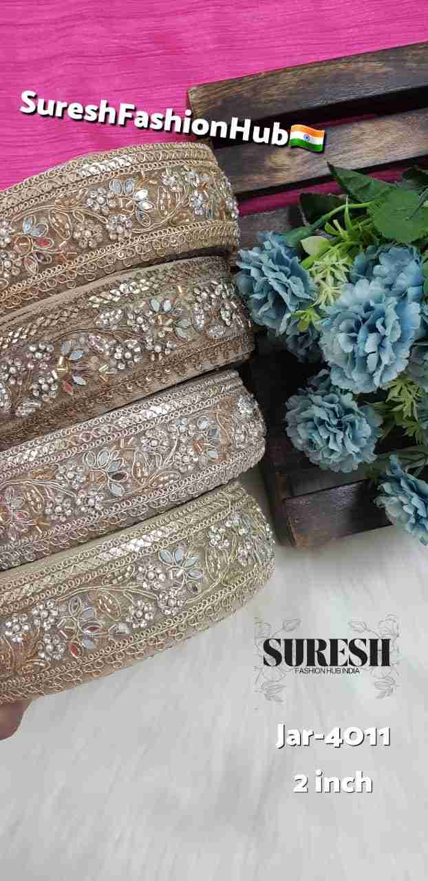 Matt Gold Regal Maggam Diamond Mirror Zari Lace – Jar-4011