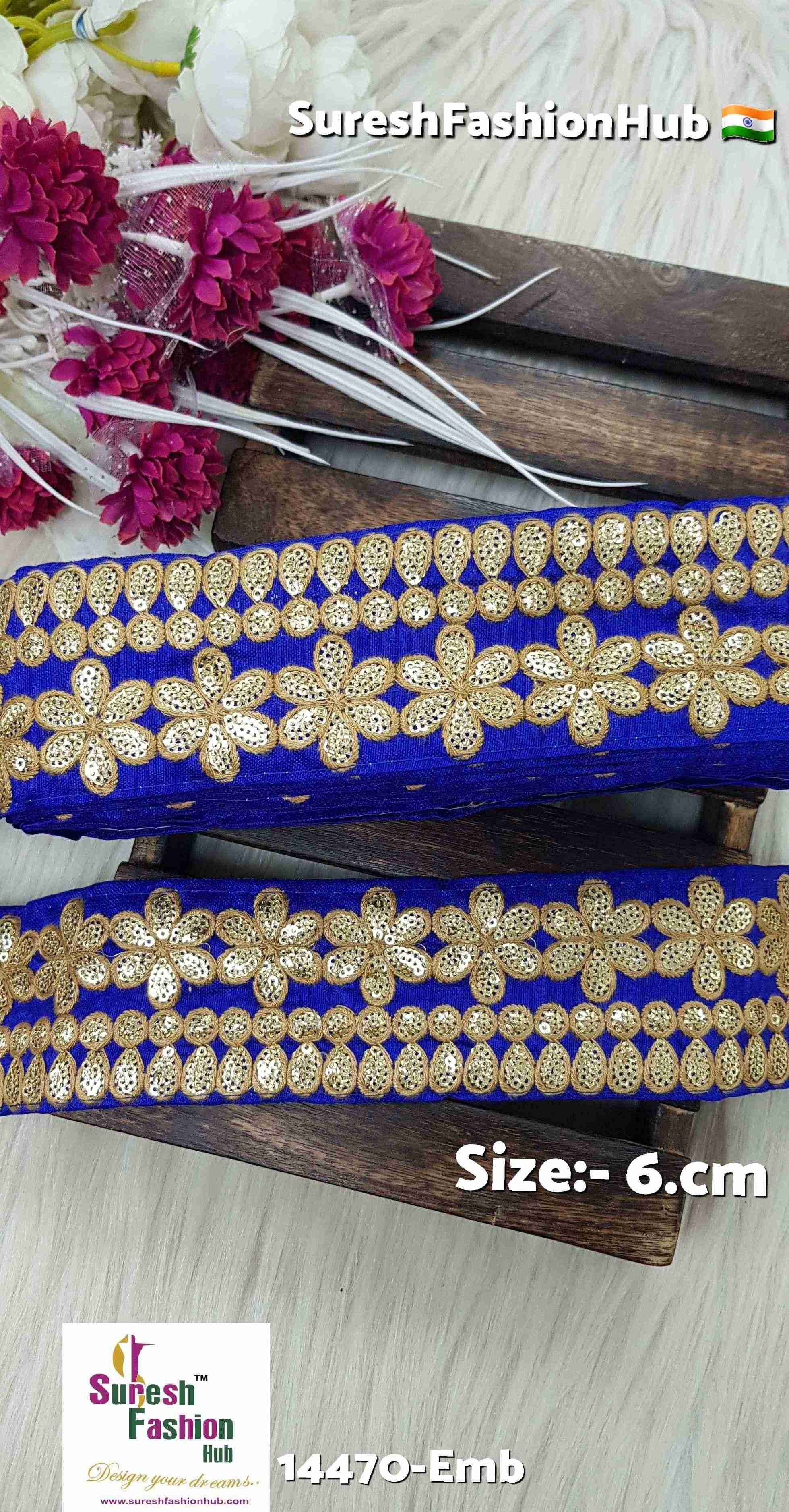 The *Dual Floral Embroidered Lace* is a unique combination of two intricate floral designs layered with sequins, creating a beautiful textured effect. Each flower is outlined with rich brown threads to enhance the design’s depth and definition. Crafted on fabric, this lace offers a superb finish and an elegant appearance, making it perfect for various fashion and décor projects.