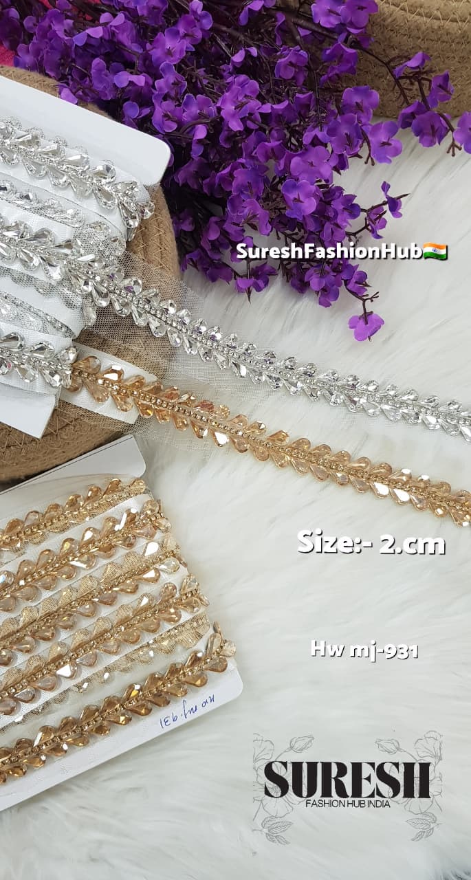Introducing our *Leaf Patti Rhinestone Chain Couture Lace, a premium designer border inspired by nature’s elegance. This lace features a beautiful **leaf (patti) pattern*, giving it a soft, graceful, and timeless appeal.