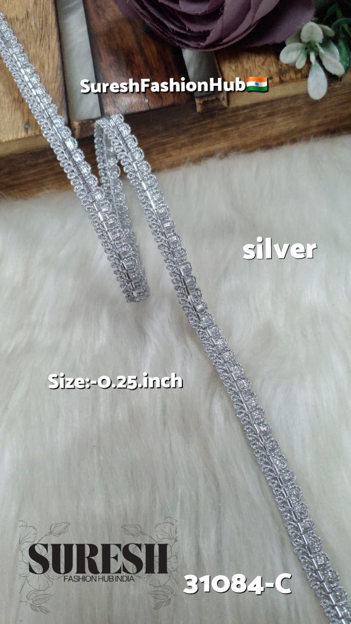 With its slim 0.25-inch width, it is ideal for fine detailing and stylish borders on *sarees, lehengas, kurtis, gowns, dupattas, blouses, kidswear, and festive garments*. Due to its economical pricing and 54-meter packaging, it is widely preferred for bulk garment production.