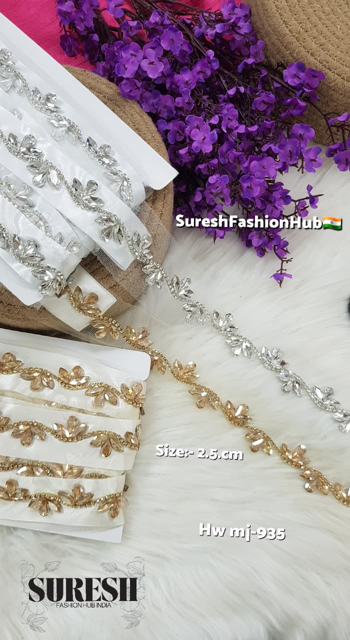 Perfect for *bridal lehengas, designer sarees, gowns, cocktail outfits, dupattas, blouses, and couture garments*, where a rhinestone chain lace adds depth, shine, and a luxurious finishing touch ✨💎👗👑