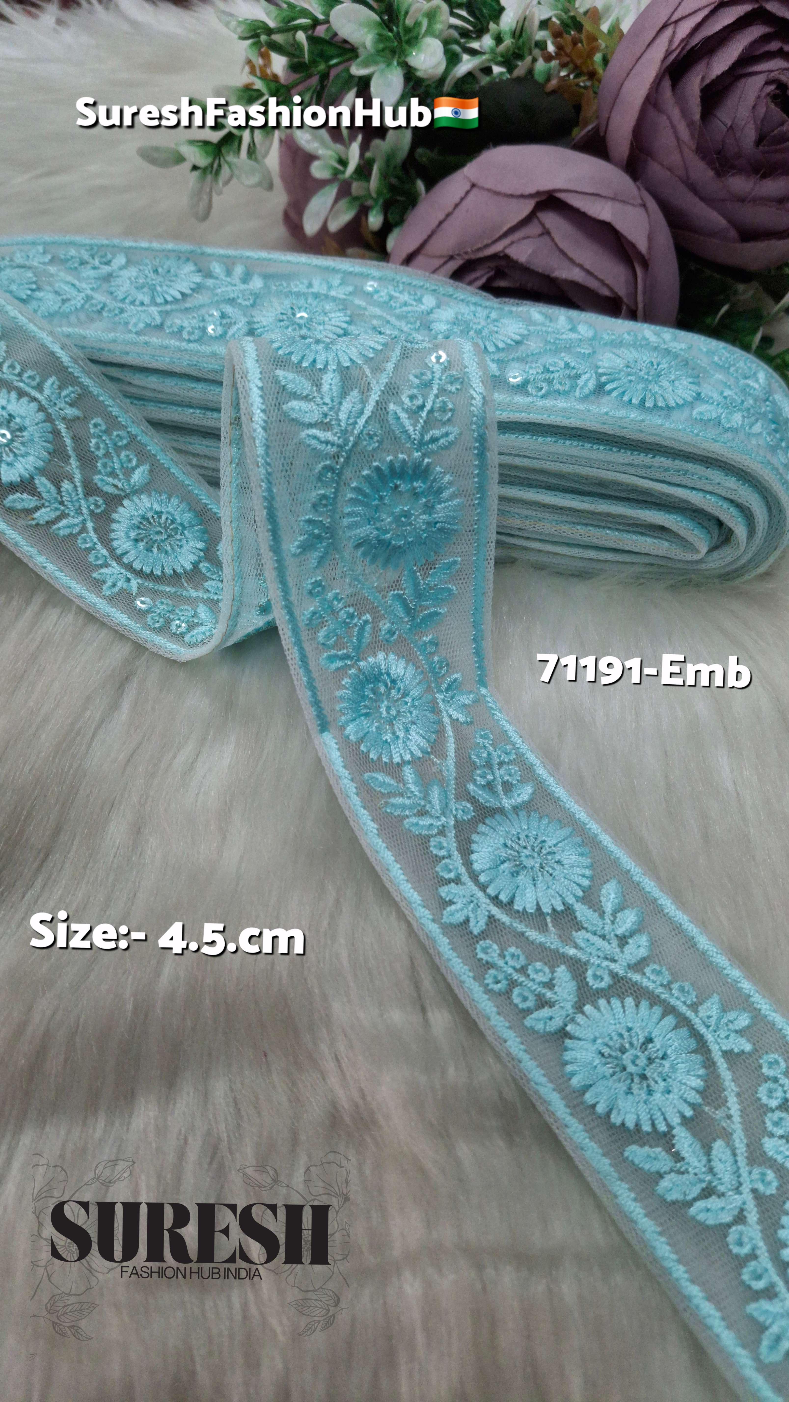To further elevate the design, we have carefully added transparent sequins, which provide a subtle dusty shimmer effect without overpowering the embroidery. The result is a lace that looks graceful, fashionable, and premium while remaining lightweight and easy to stitch.