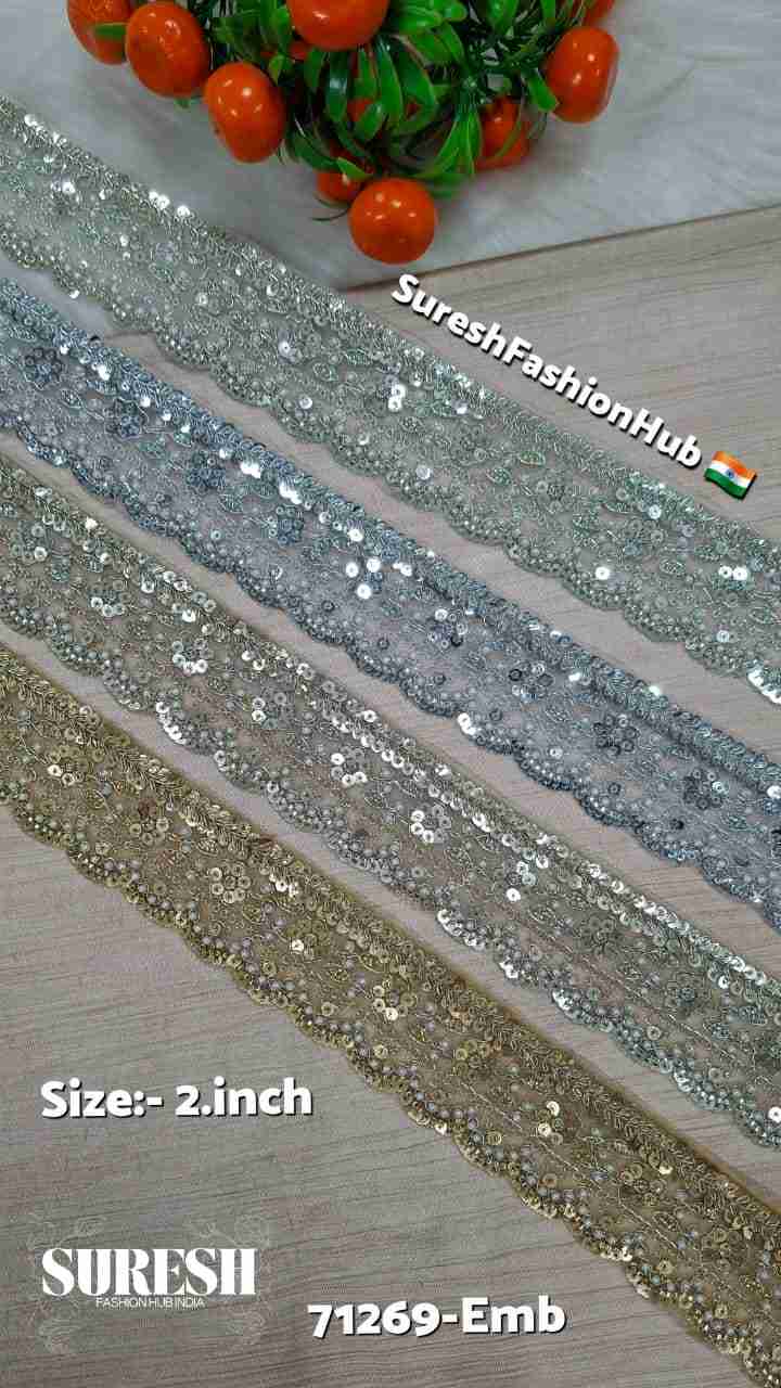 With its refined 2-inch width and full 9-meter length, this lace offers excellent fall, smooth application, and long-lasting durability — ideal for premium designer, festive, and bridal wear.