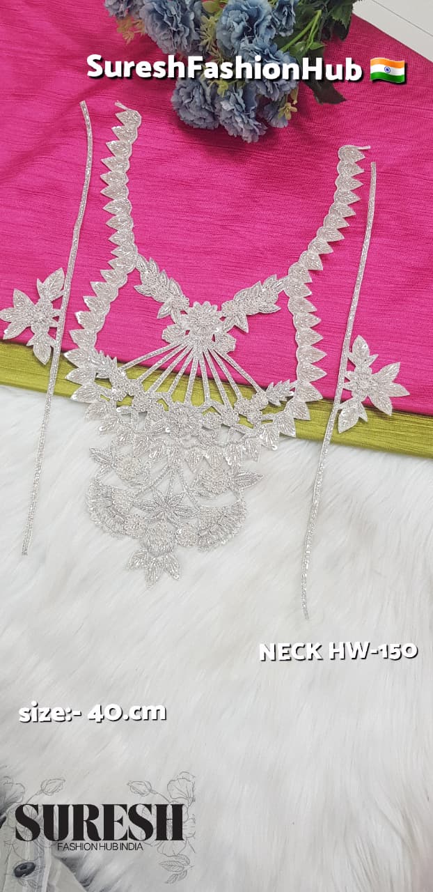HW-150 is a *fully handmade floral Zardorsi neck design, beautifully crafted with traditional workmanship by **Suresh Fashion Hub India*.