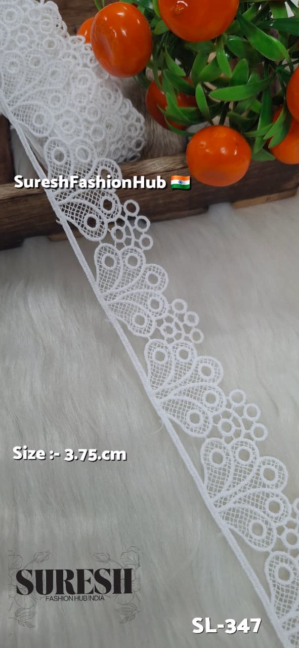 Offered by *Suresh Fashion Hub India, design **SL-347* is a premium imported GPO lace sourced from China, appreciated for its extra-ordinary quality and clean finishing. This *one side floral GPO lace* features a finely detailed floral pattern that complements both *traditional and modern wear*.