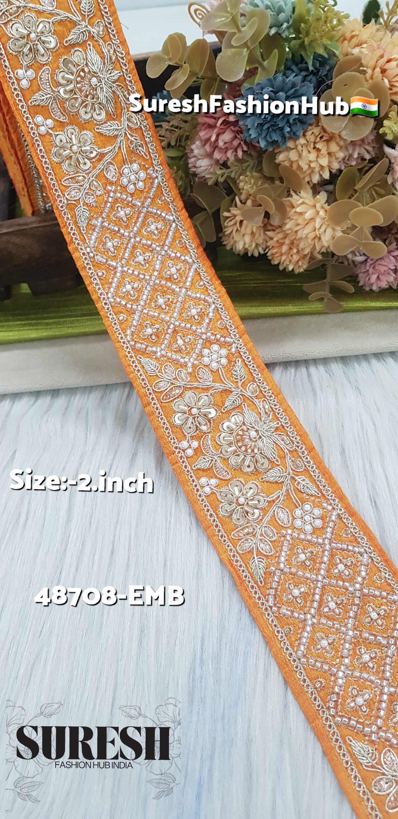 Presenting our *48708-Emb Exclusive Floral Dori Embroidery Lace, a **beautifully crafted and premium-quality embroidery lace* designed to elevate any outfit.