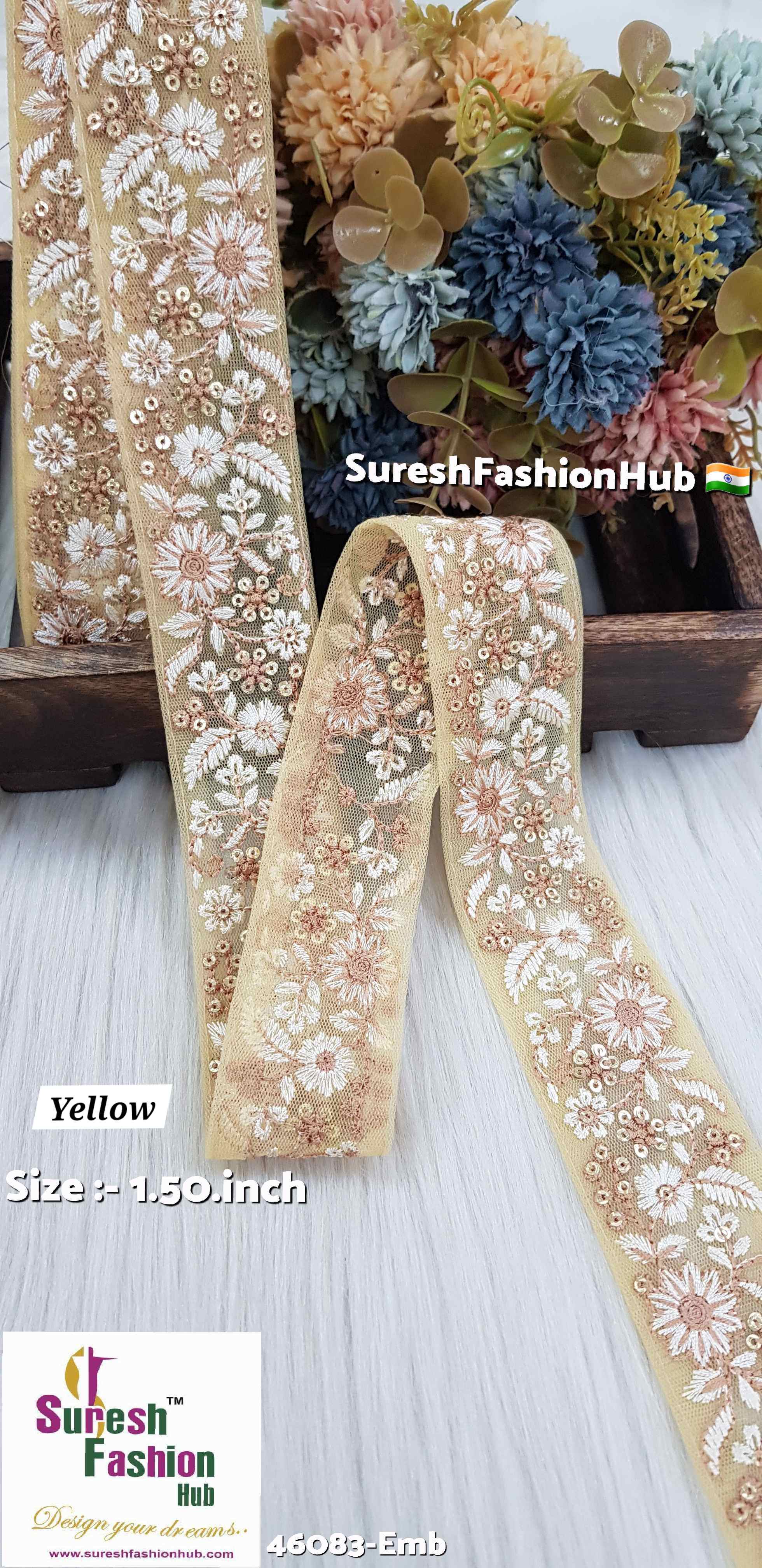The *46083-Emb* Elegant Floral Embroidered Border from Suresh Fashion Hub India combines intricate embroidery with beautiful color combinations, creating a versatile and exquisite trim that enhances the beauty of any project. Elevate your designs with this sophisticated border!