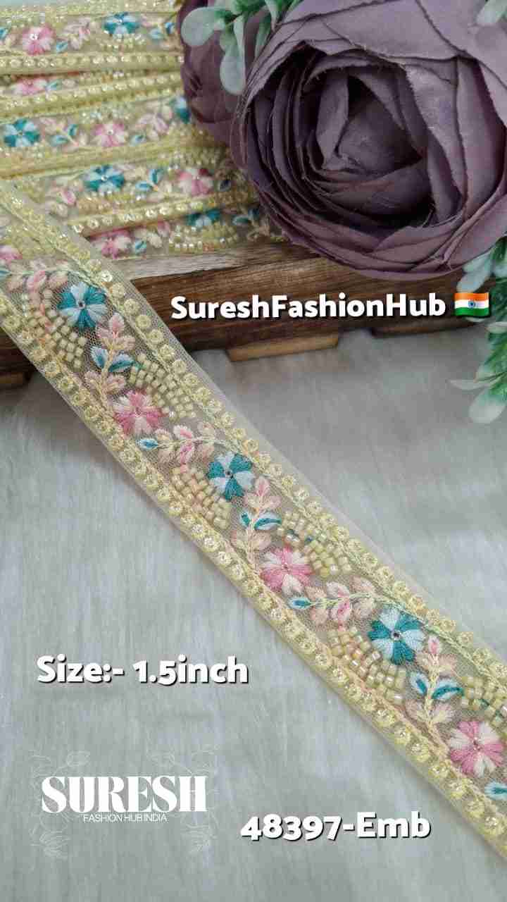 With its neat 1.5-inch width and premium finish, this lace offers smooth fall, easy application, and long-lasting durability — making it a versatile choice for both subtle and statement designer creations.