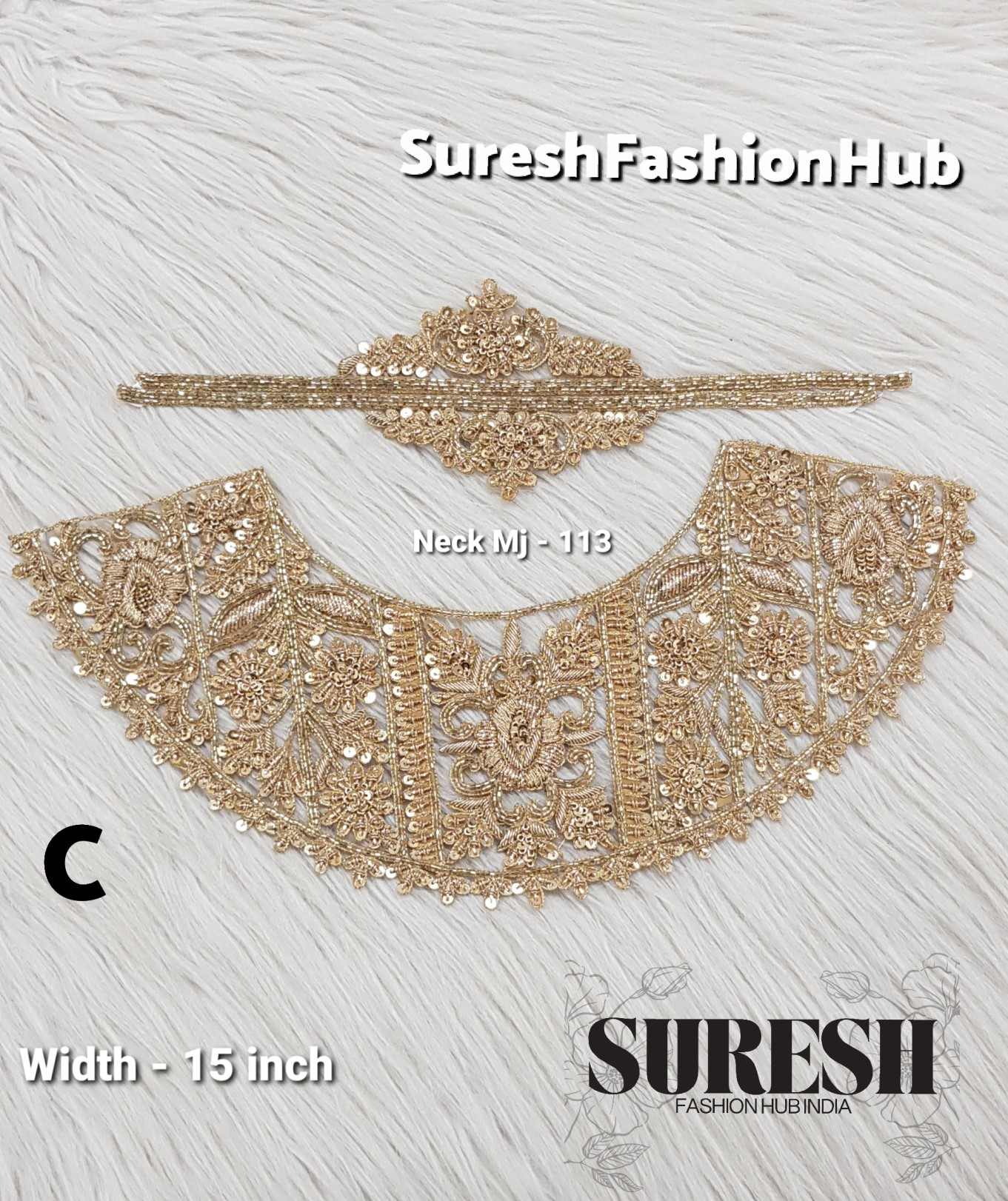 The pattern is beautifully designed in circular and floral motifs, giving a heritage look that blends luxury with sophistication. Every neck set comes with sleeve pieces, making it perfect for ethnic wear such as blouses, kurtis, and bridal ensembles.