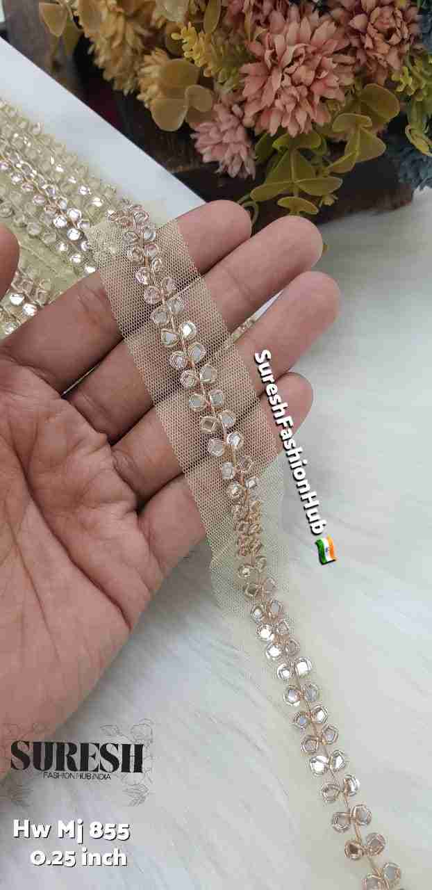 *Mj-855* is a *graceful, finely handcrafted border* that blends *mirror shimmer, saadi texture, and Zardorsi elegance* into a slim, premium lace—perfect for *bridal couture, festive fashion, and high-end designer collections* ✨