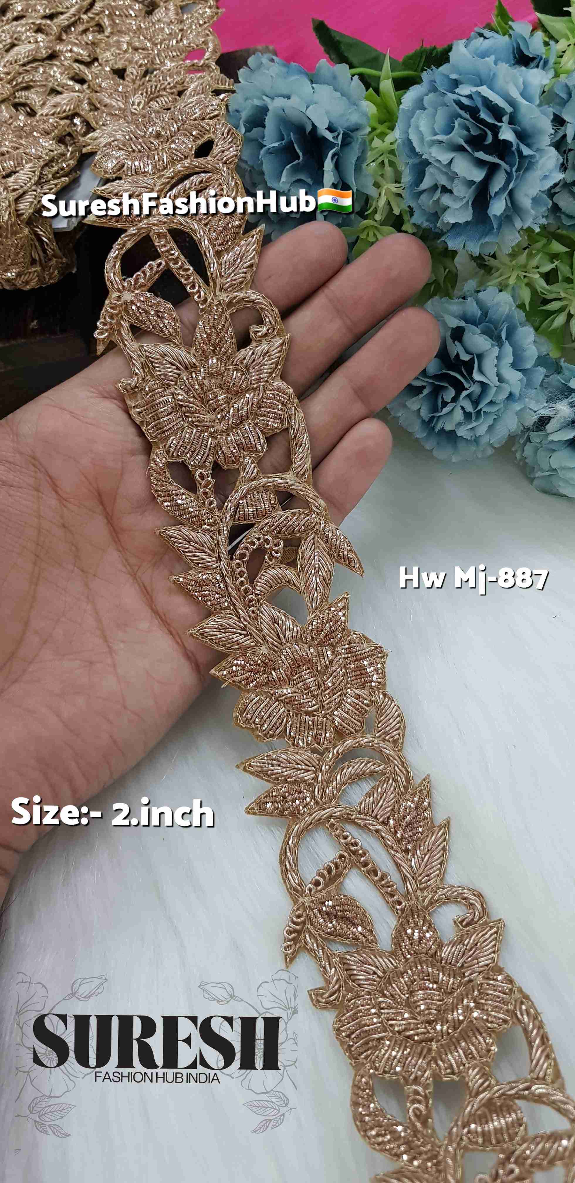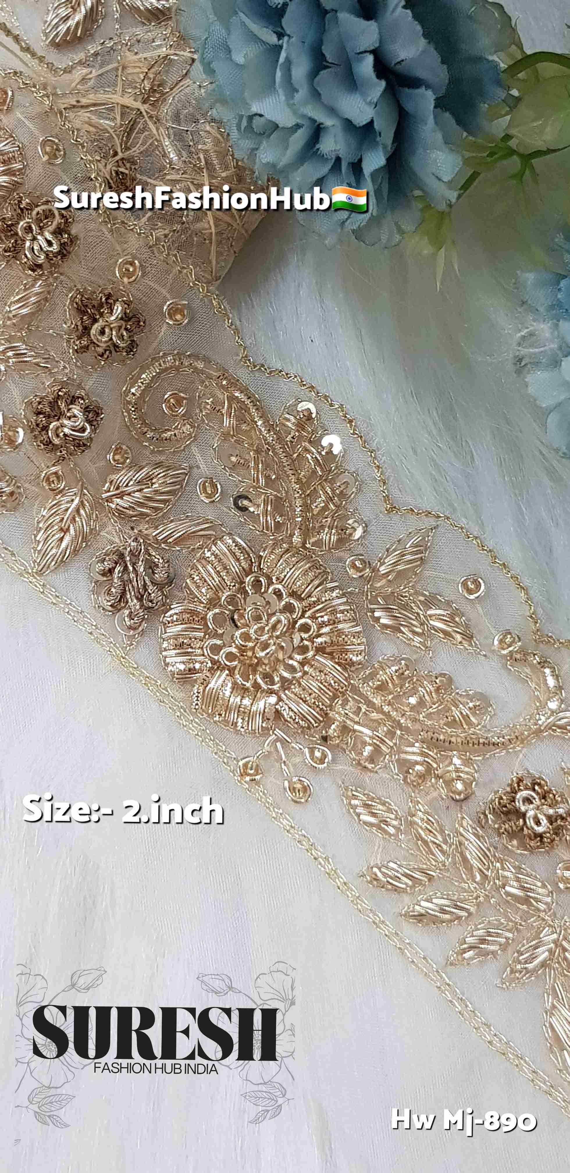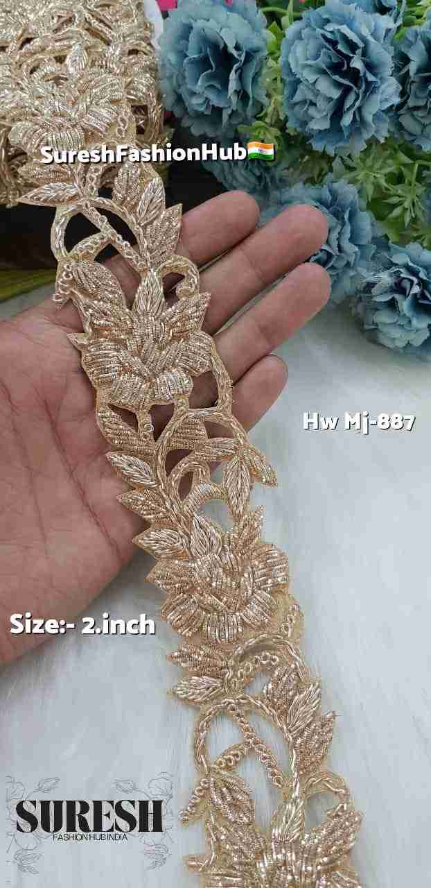 Royal Bloom Gold Handmade Designer Zardosi Lace – 2 Inch Mj-890