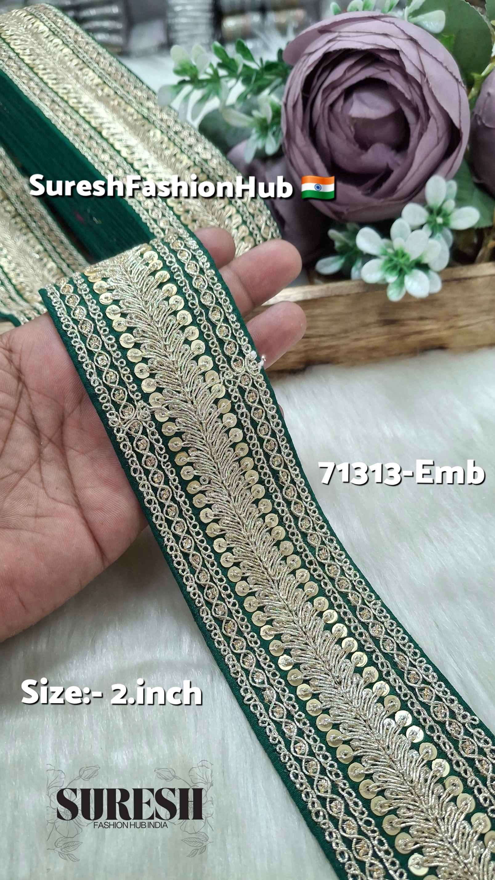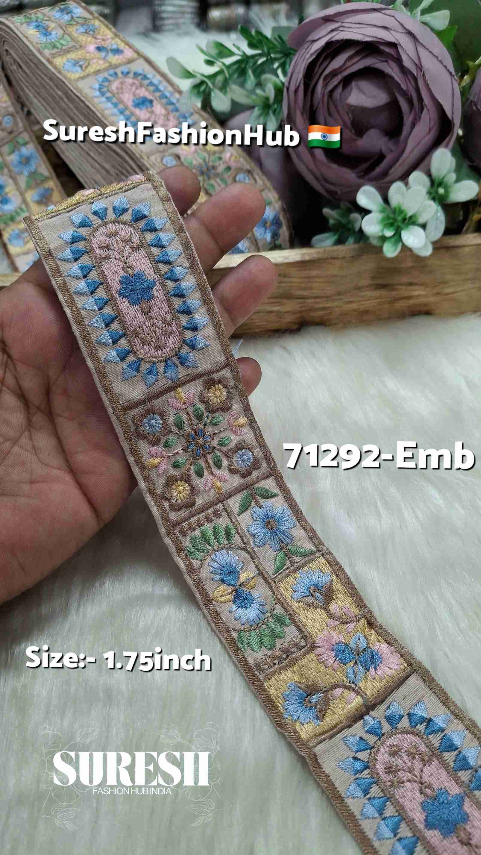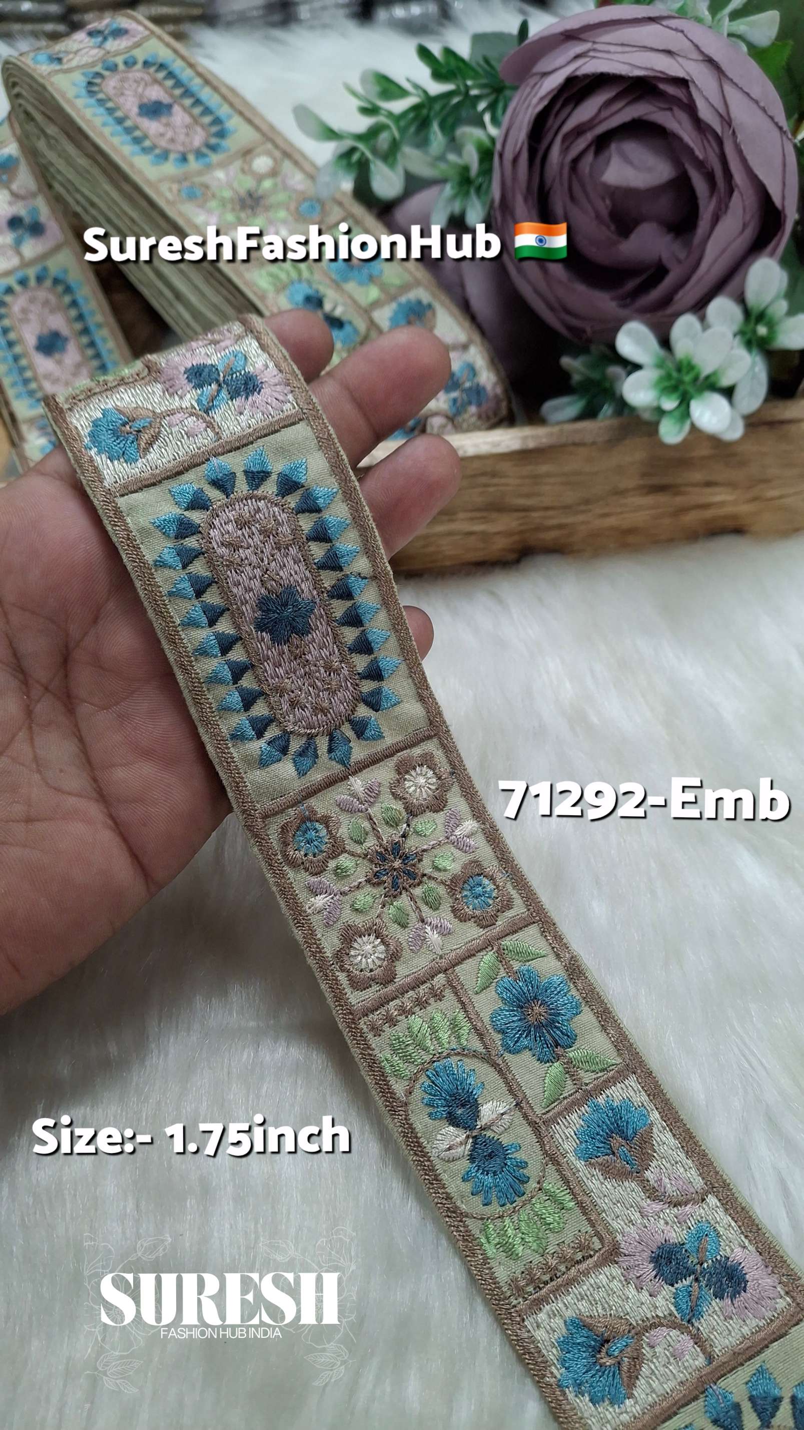 Olive Beige Patchwork Tile Embroidery Border – 71292-EM
