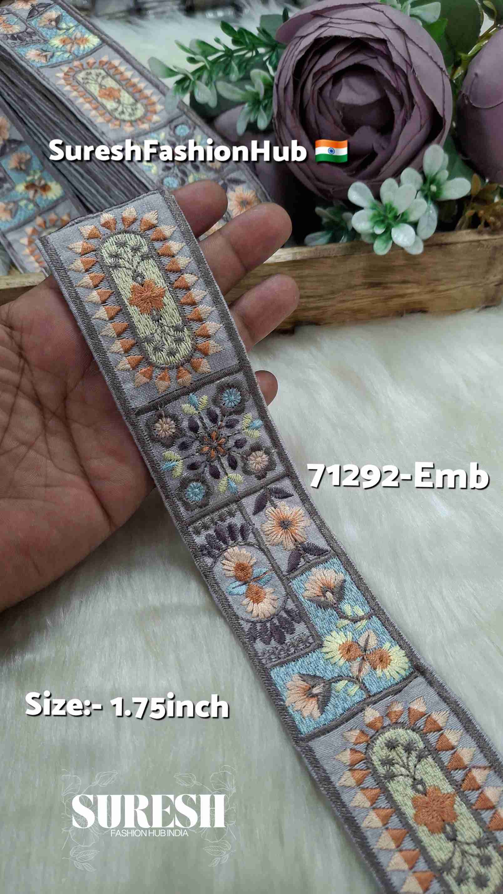 Dusty Taupe Patchwork Tile Embroidery Border – 71292-EMB