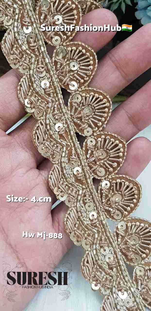 Royal Gold Handmade Cutwork Zardosi Lace – 2 Inch-Mj-887