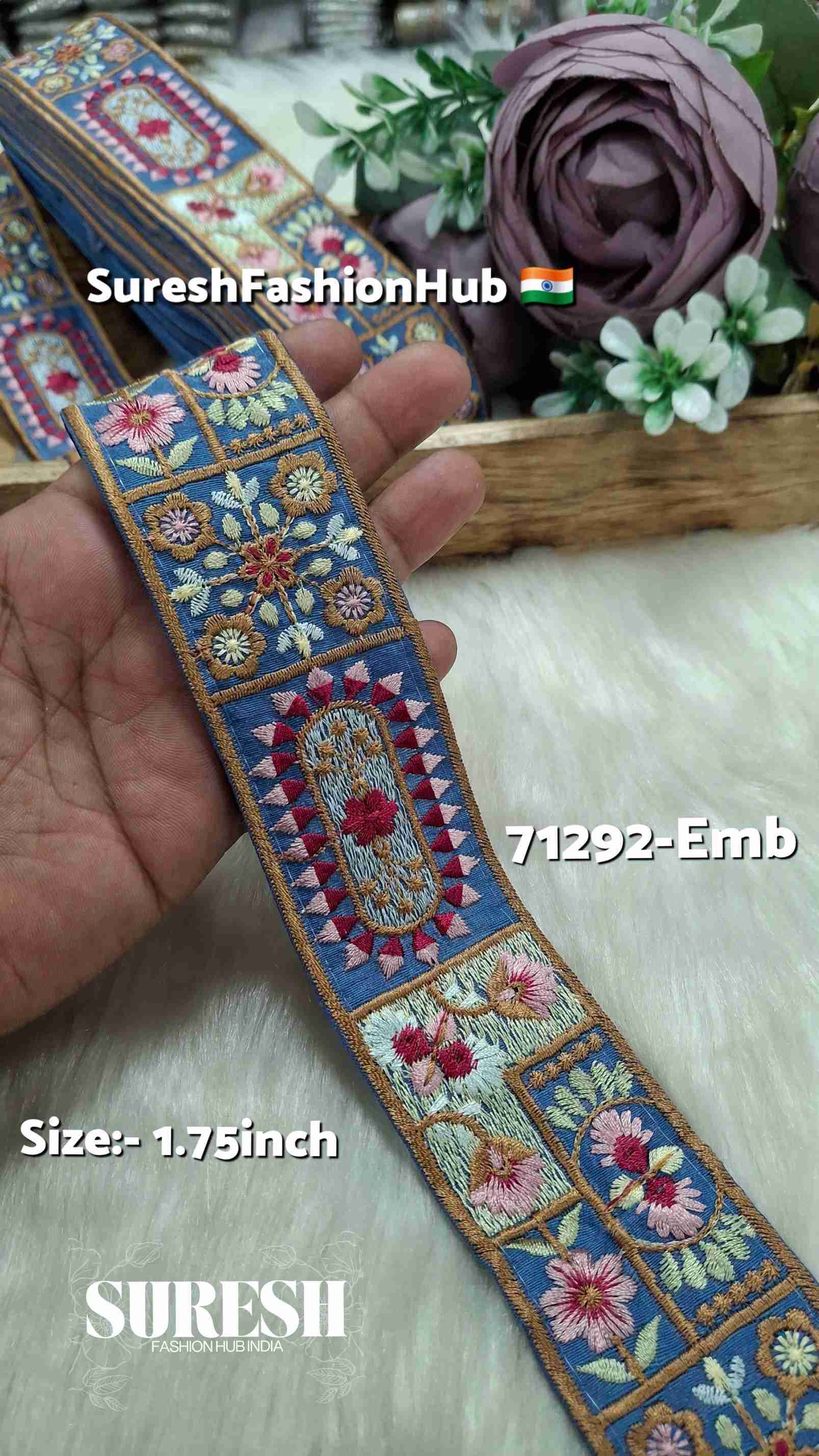 Blue Patchwork Tile Embroidery Border – 71292-EMB